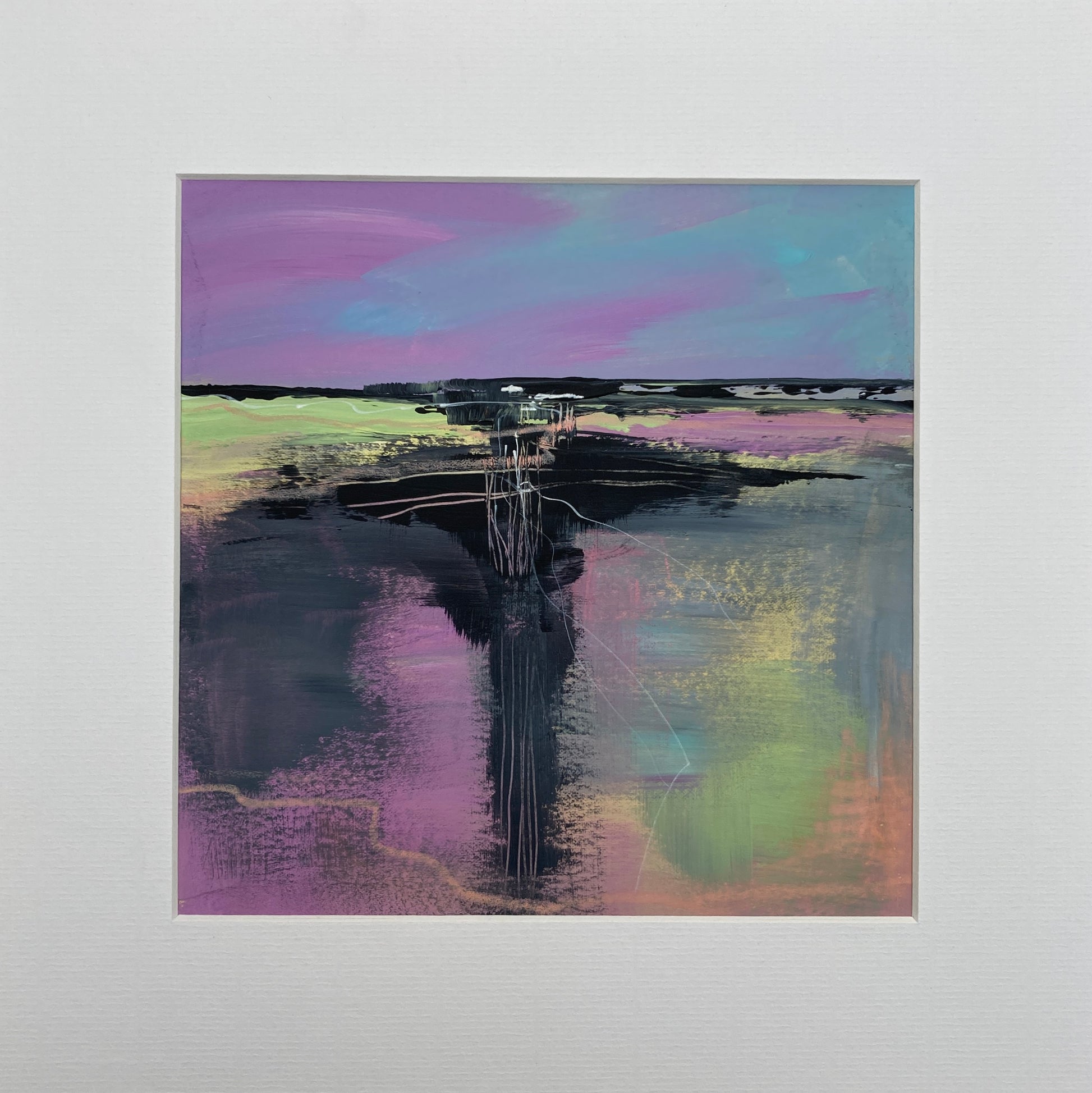 This painting would be ideal for hanging in a modern home, adding a pop of colour to a plain room, or more atmosphere and drama to a bright room. The original artwork is provided in a white mount, which is perfect for displaying on a shelf or mantelpiece in a living room, bedroom or entryway. If you wanted to hang the painting on a wall to make it a bright centrepiece in your home, it would be really easy to pop it into a square frame (not provided with purchase) - I think that a plain white frame or a striking black frame would really compliment the painting.